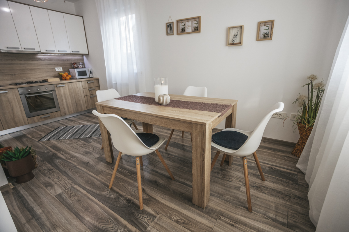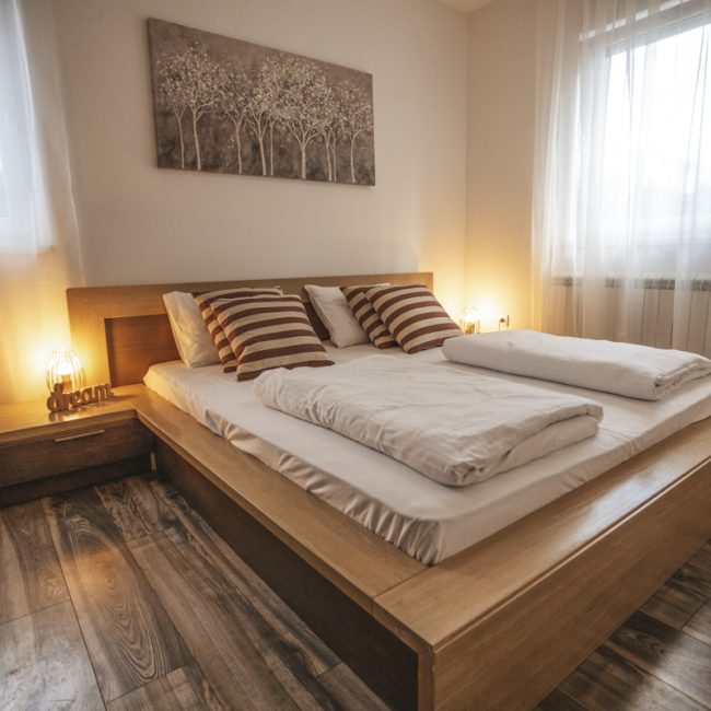 Naša usluga uključuje privatno parking mjesto ispred ulaza u zgradu s video nadzorom, besplatni brzi internet, MaxTV paket, promjenu posteljine i ručnika te profesionalno čišćenje apartmana svakih sedam (7) noći u slučaju duži boravak.
