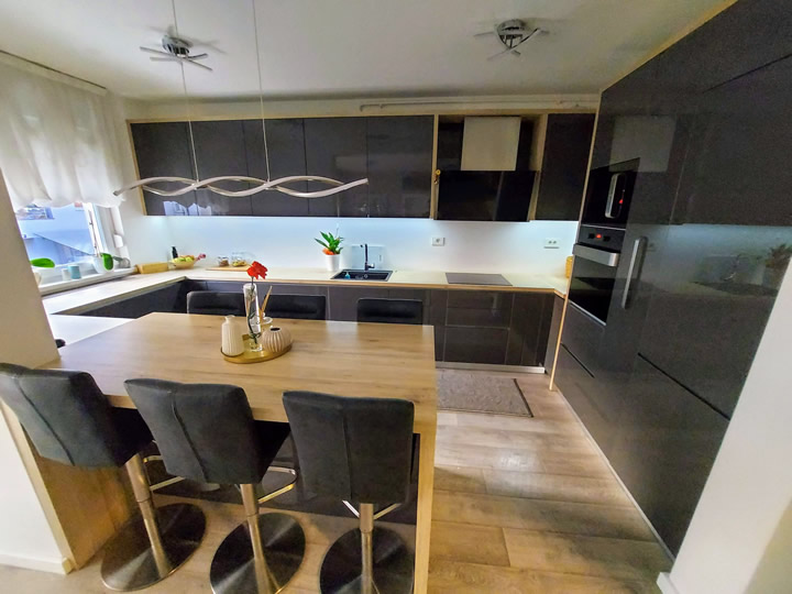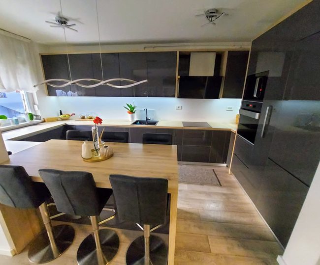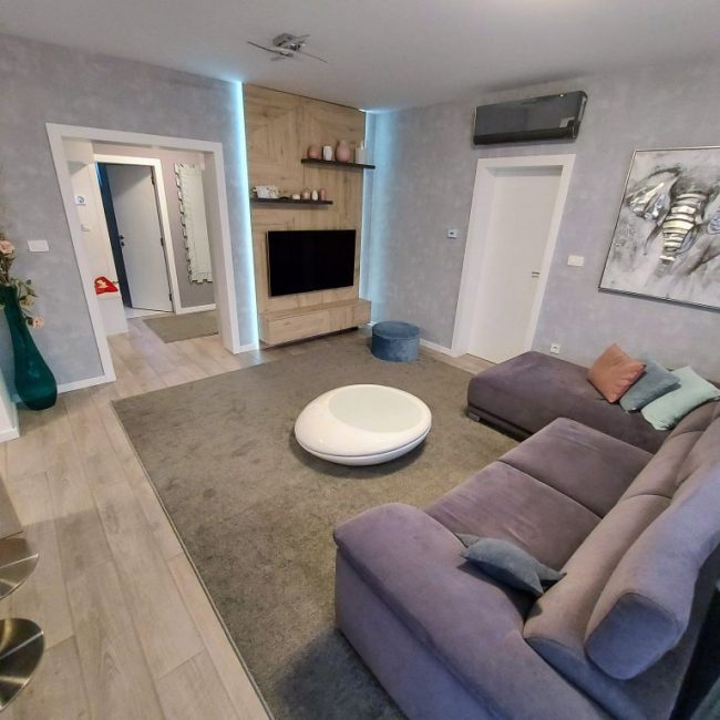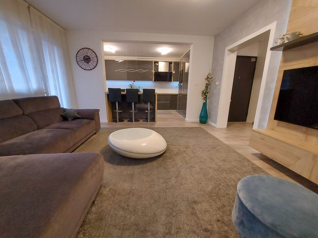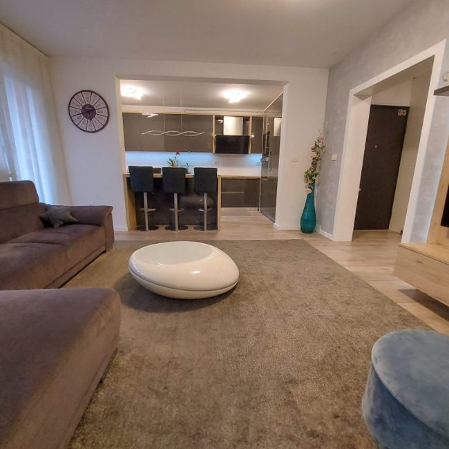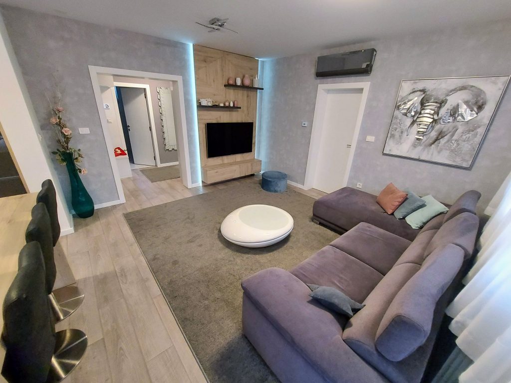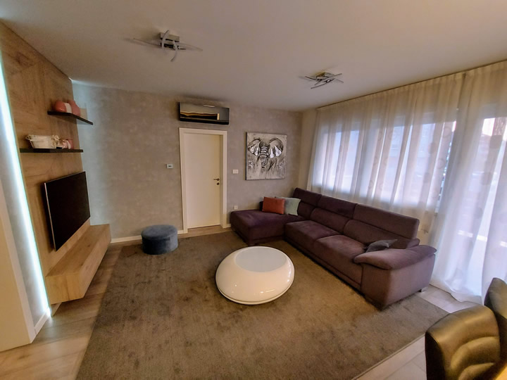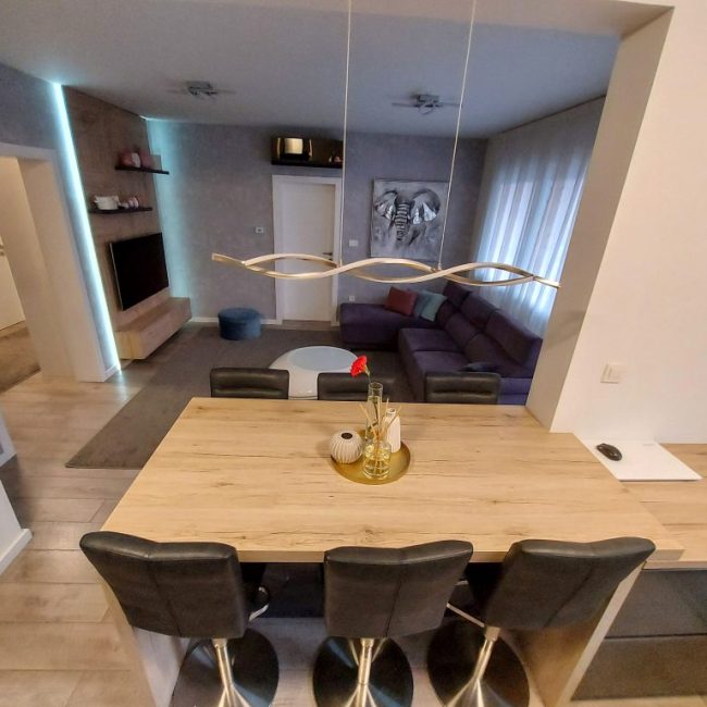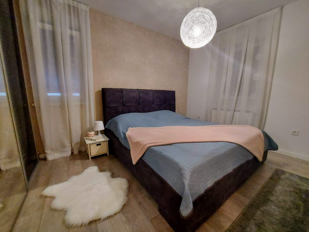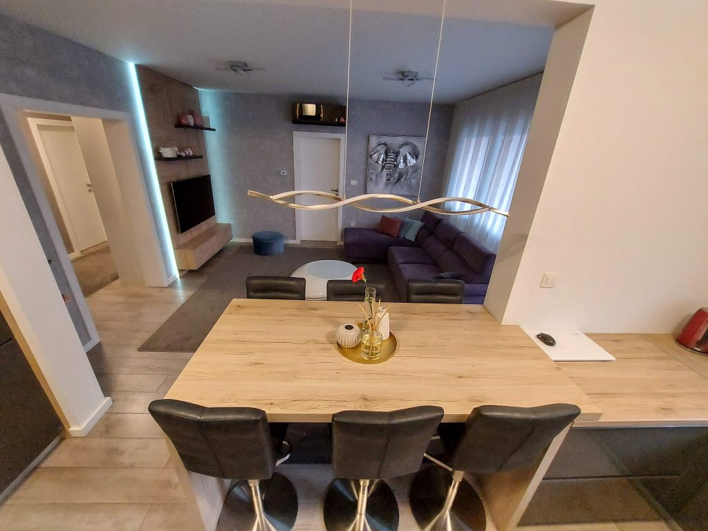 Naša usluga uključuje privatno parking mjesto ispred ulaza u zgradu s video nadzorom, besplatni brzi internet, MaxTV paket, promjenu posteljine i ručnika te profesionalno čišćenje apartmana svakih sedam (7) noći u slučaju duži boravak.